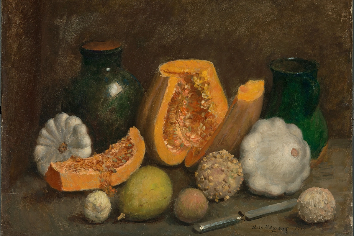 Илья Машков писал пищу — как повседневную, так и праздничную, простую и экзотическую — на протяжении всей своей творческой биографии: от ярких вывесок для лавок и базаров до сдержанных, почти медитативных натюрмортов, созданных на даче в Абрамцево в последние годы жизни. Благодаря его усилиям натюрморт, долгое время считавшийся второстепенным жанром в русской живописи, не только приобрел вес, но и стал одним из ведущих художественных языков советской эпохи. Его стремление к изображению изобилия и полноты бытия, возможно, совпадало с государственной пропагандой идеалов коммунистического процветания, но Машков — в отличие от многих современников — не растворился в агиткультуре. Его живопись сохранила индивидуальный, почти детский восторг перед жизнью, осталась миром доверчивого, наивного, но не примитивного взгляда, полным энергии и цвета.